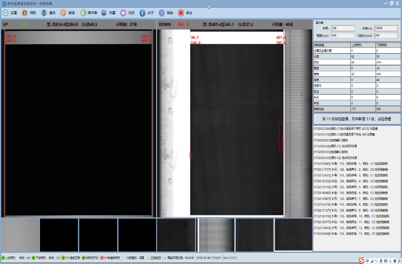 安装在卷绕机末端,用来检测极耳的极耳缺失、不整齐、折叠、短路、打皱,尺寸异常六类缺陷。