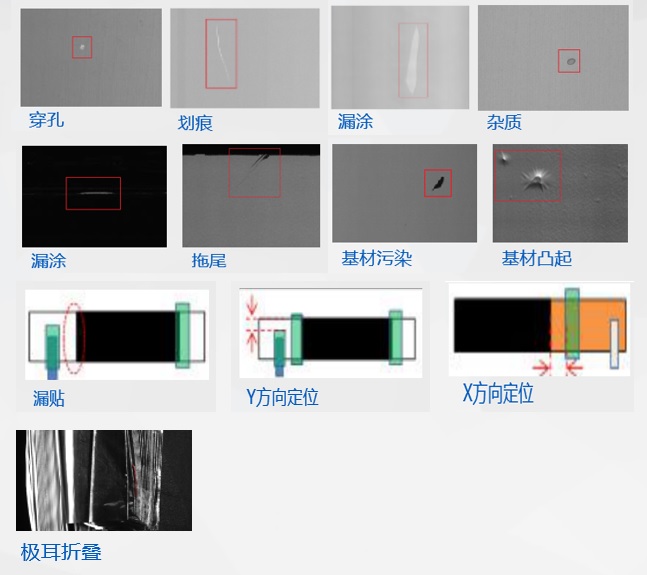 应用对象与场合:新能源车电池生产各道工艺缺陷检测。如隔离膜、凹版/涂布、绿胶、极耳等工艺缺陷检测。